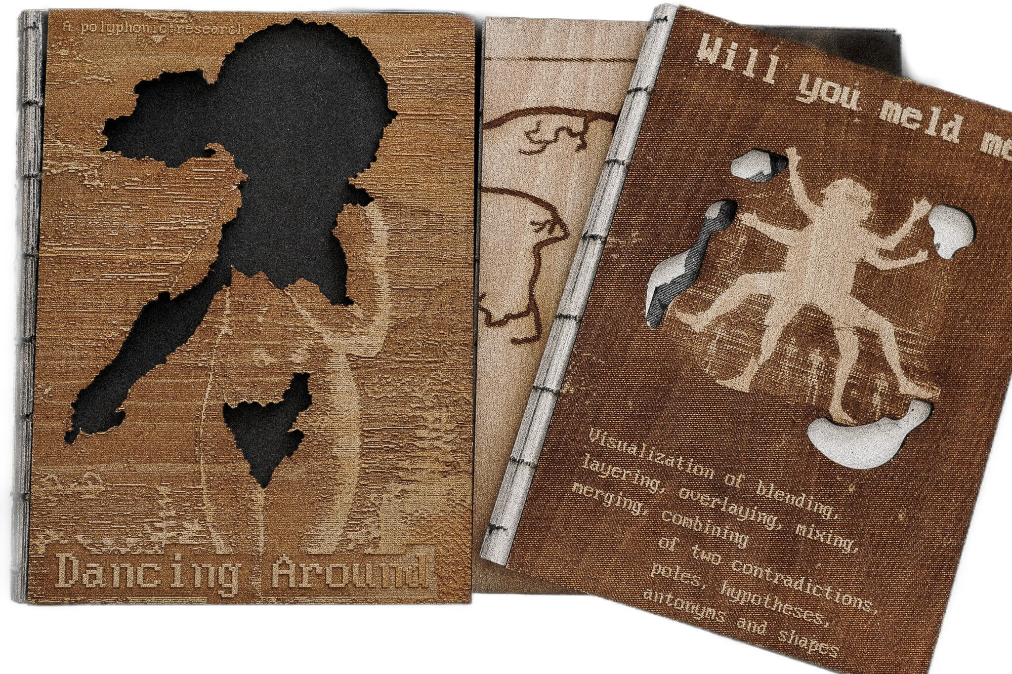 Three books—Dancing Around, Will You Meld Me?, and Will You Marry Me?—explore the concepts of togetherness and cohabitation. They question whether harmony can exist between two alien elements. Through processes of overlaying, merging, hypothesis, antonyms, shapes, and blending, these explorations culminate in mirrored plates that display geographical antipodes in a single installation.